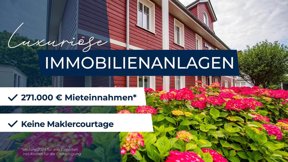 Das Reihenhaus in rot gehaltener Holzoptik ist im Jahre 2015 neu erstellt worden. Jede Wohnung wurde individuell geplant und urlaubsgerecht eingerichtet und bietet ausreichend Raum für Großfamilien oder zwei Familien. Es finden insgesamt bis zu 12 Personen Platz.