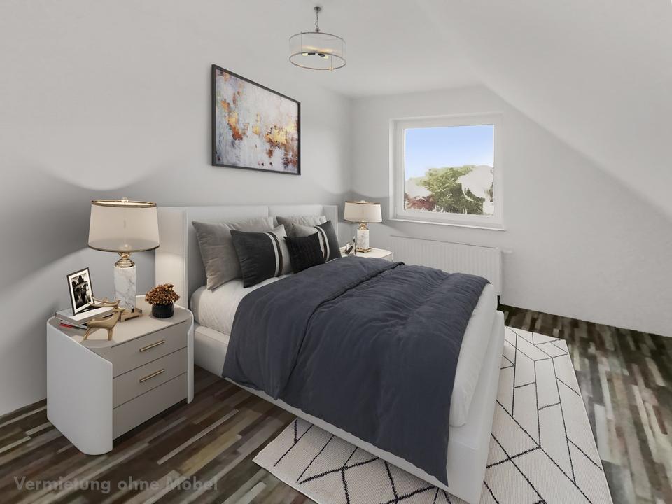 OG: Das Obergeschoss ist über eine moderne Stahltreppe mit Holzstufen und Geländer erreichbar. Im Obergeschoss befinden sich 3 gemütliche Schlafzimmer und 1 großes Badezimmer mit Badewanne.