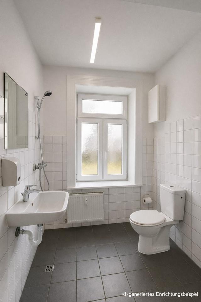 Über den Eingangsbereich ist zudem der hintere Teil der Gewerbefläche erreichbar. Dieser Bereich bietet umfangreiche Abstell- und Lagerflächen, beispielsweise für Arbeits- oder Kursmaterialien, sowie separate WC-Räume für Personal. Darüber hinaus stehen hier mehrere großzügige Zimmer zur Verfügung, die sich als Büro- oder Verwaltungsräume nutzen lassen. Der hintere Bereich kann – je nach Nutzungskonzept und in Abstimmung mit der Eigentümerin – weiter aufgewertet und individuell angepasst werden. KI-generierte Einrichtungsbeispiele für die Räume finden sich als Inspiration in den Anzeigebildern des Inserats.