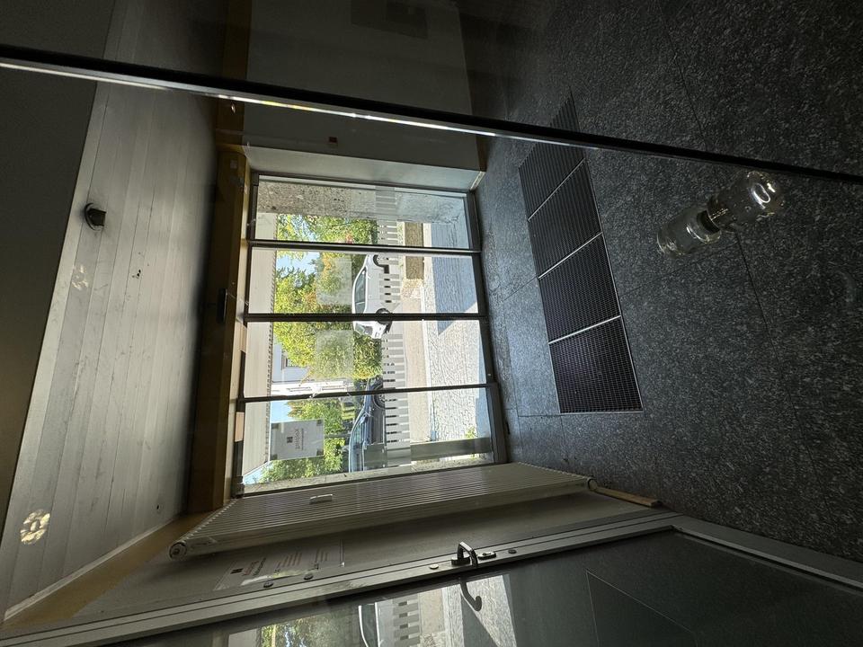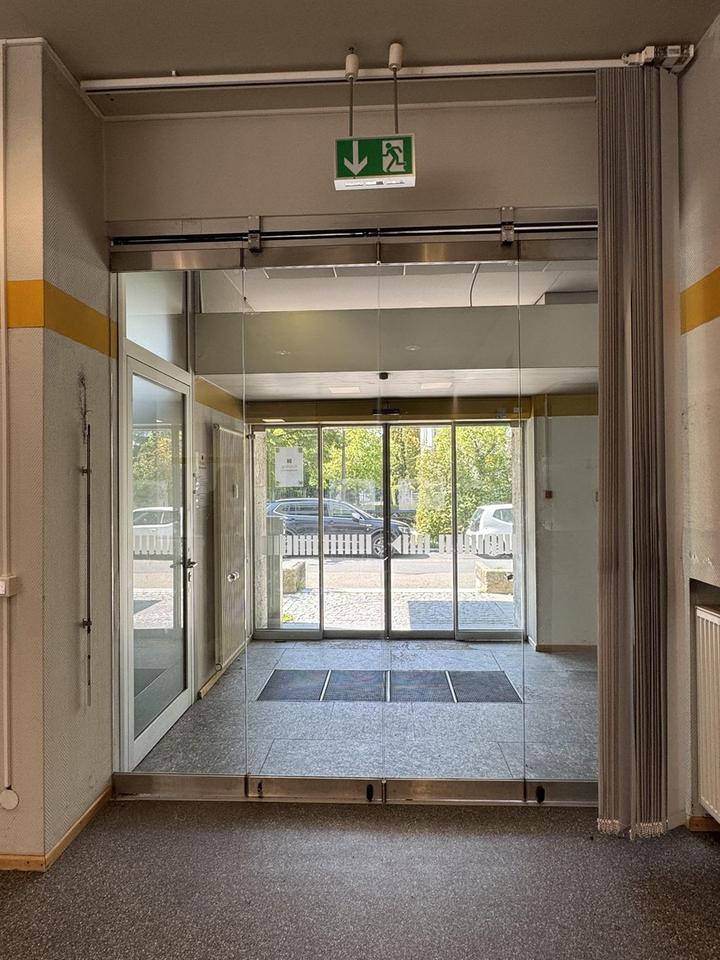 – Elektrische Glastüren am Haupteingang