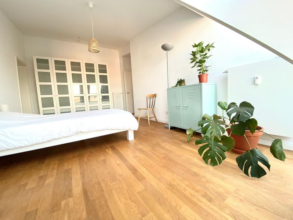 We offer you an attic apartment built in 2015 in the heart of Prenzlauer Berg. The generously cut rooms, the open kitchen-living room with the view over Berlin invite you to stay.