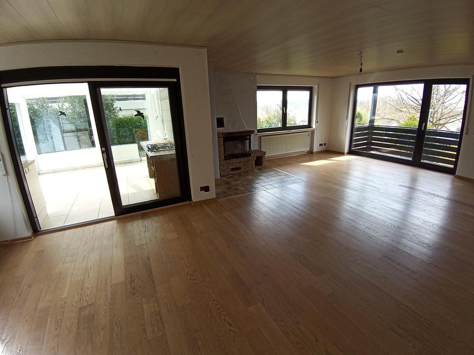 – Offenes Wohn- und Esszimmer mit Kamin und Balkon