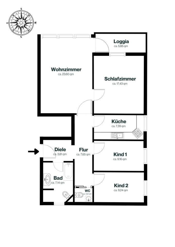 Für Wohnkomfort sorgen isolierverglaste Kunststofffenster mit Schallschutz, die den Bahnlärm draußen lassen und innen eine ruhige Atmosphäre schaffen. Ergänzt wird die Ausstattung durch eine zentrale Gasheizung.