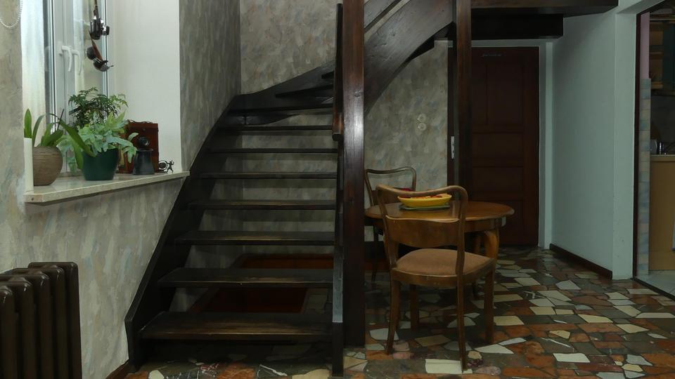 Die offene, gewendelte Holztreppe führt weiter bis zum DG, wo sich ein weiteres Zimmer und ein großer, ausbaufähiger Bodenraum befinden.