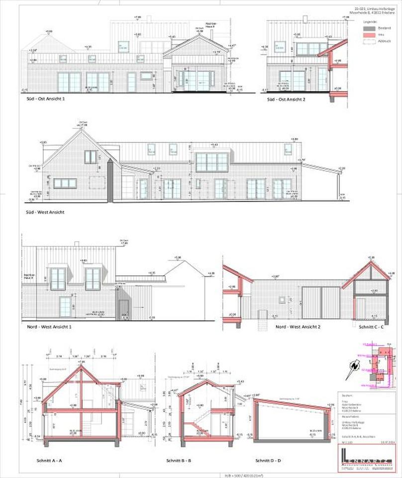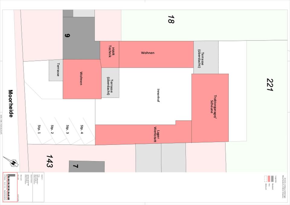 Die Hofanlage wurde neu geplant und es liegt auch die amtliche Baugenehmigung für zwei Wohneinheiten à 100qm vor … wobei nach Auskunft des Architekten bis 5 Wohneinheiten (davon 3 kleine) umsetzbar wären – daran bestand aber von unserer Seite kein Interesse.