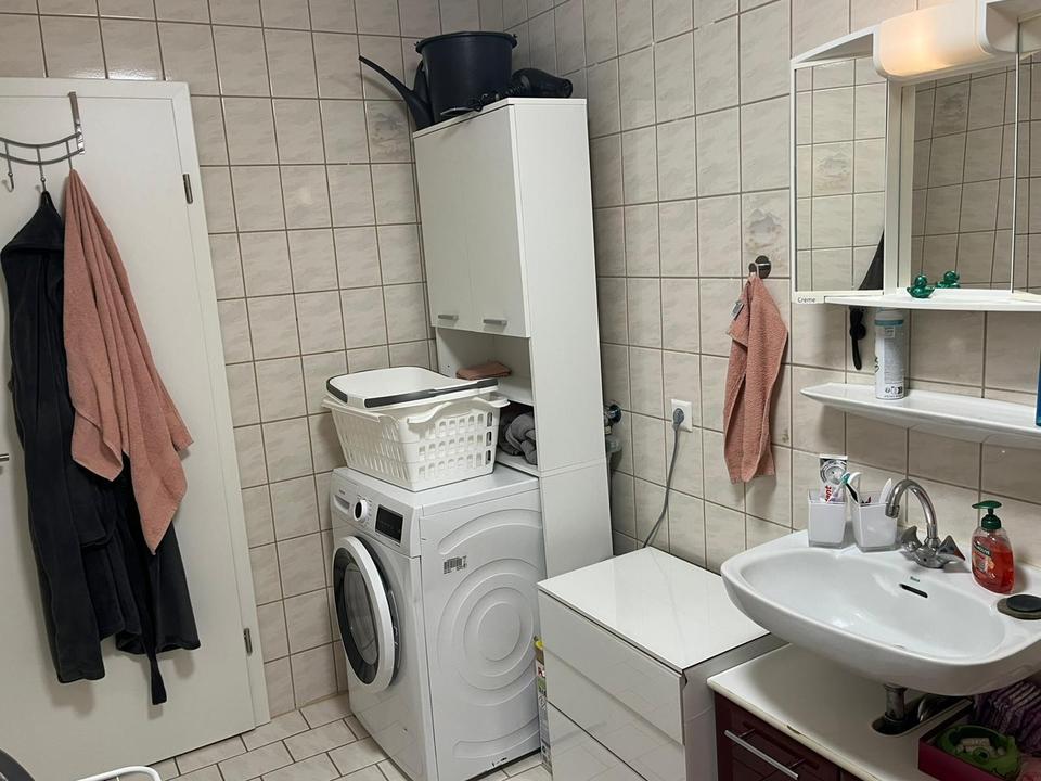 Das Badezimmer präsentiert sich in einem gepflegten Zustand und ist mit Dusche/Badewanne ausgestattet.