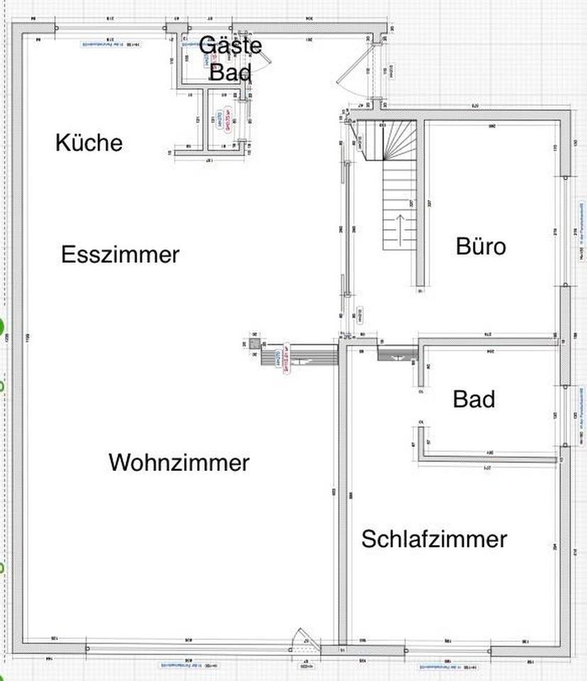 EG: Ein heller Wohn- und Essbereich mit offener Einbauküche, halbversetzt verteilt auf 2 verschiedenen Ebenen. Auf dieser Etage befindet sich außerdem noch der Treppenhaus -Abgang und -Aufgang, ein Kinderzimmer / Büro, Elternschlafzimmer mit eigenem Badezimmer, Gäste WC, Garderobe sowie der Zugang zum Garten mit Sommergarten bzw. überdachte Terasse.