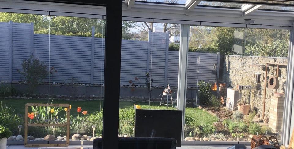 * Sommergarten mit Schiebetüren, Insektenschutz sowie Beschattung