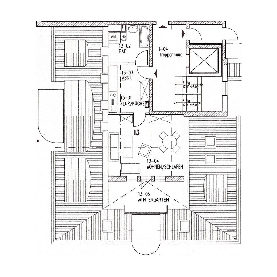 Tageslichtbad (inkl. Waschmaschinenanschluss), einem Wintergarten, einem Pkw-Stellplatz, Kellerraum und zusätzlich einem großräumigen Spitzboden (begehbar über eine herausklappbare Leitertreppe).