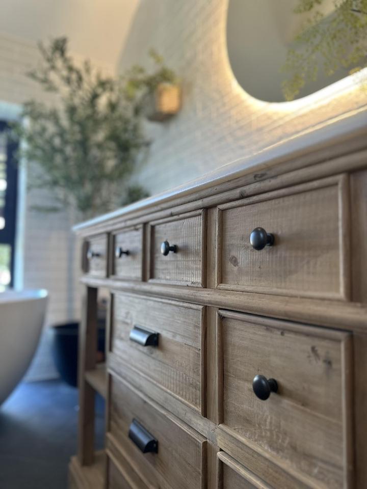 Doppelwaschtisch aus Antikholz mit Marmorplatte und