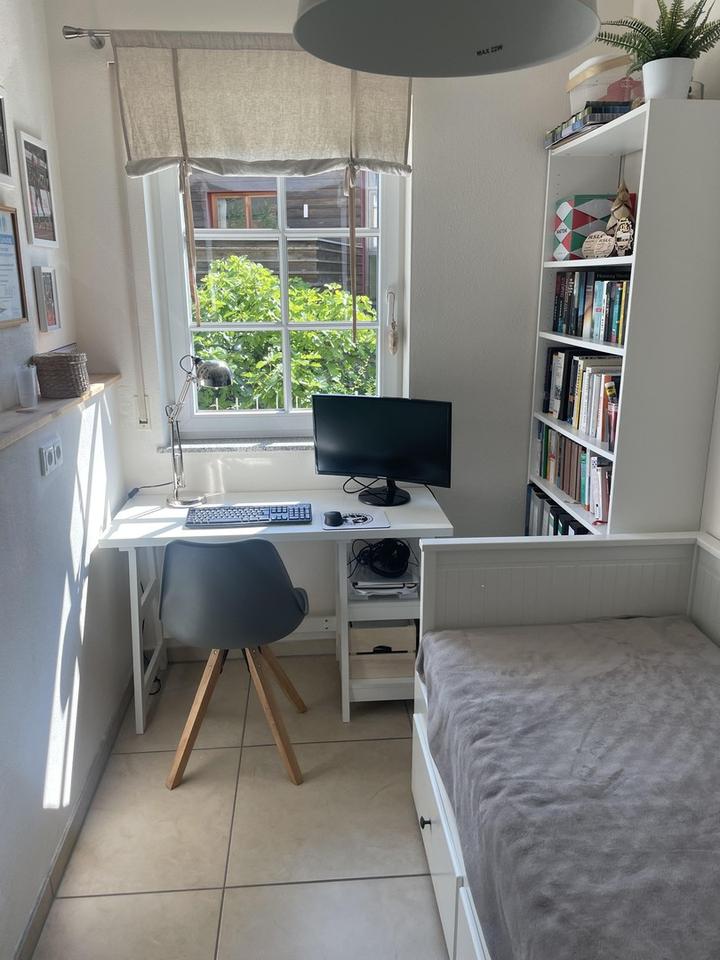 Herzstück der Wohnung mit separatem Eingang ist der ca. 64m2 große Wohn-Essbereich mit Kachelofen und offener Küche. Über einen Flur sind das ca. 14m2 große Schlafzimmer und das 10m2 große Bad sowie das ca. 7m2 große Bürozimmer zu erreichen.
