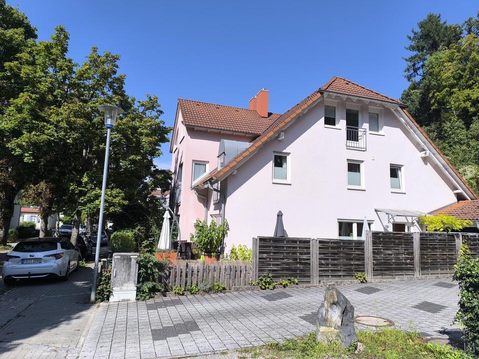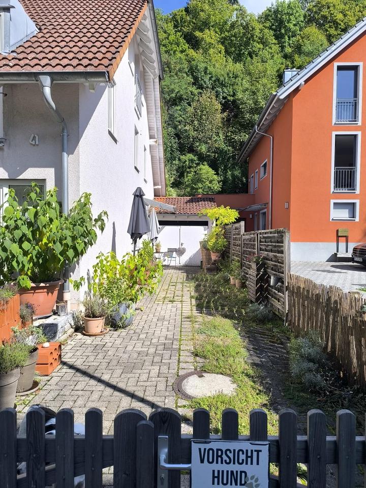 Die sonnige Doppelhaushälfte wurde 1994 3-geschossig gebaut, hat 153,5 m² Wohnfläche auf einem 186 m²-Grundstück mit zwei Terrassen. Eine liegt im pflegeleichten Vorgarten und eine – von der Küche und durchs Schöpfle (Carport) zugänglich – hinter dem Haus.