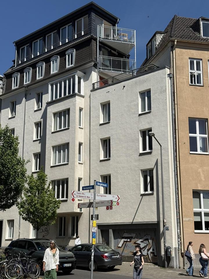 Die Wohnung liegt zentral aber ruhig in der Aachener Innenstadt wenige Meter vom Ponttor entfernt. Die unmittelbare Umgebung bietet eine hervorragende Infrastruktur mit zahlreichen Einkaufsmöglichkeiten, Restaurants und Cafés. Eine gute Anbindung an den öffentlichen Nahverkehr ist gegeben, was schnelle Wege in alle Teile der Stadt ermöglicht. Kulturelle Einrichtungen und Freizeitmöglichkeiten sind ebenfalls fußläufig erreichbar.