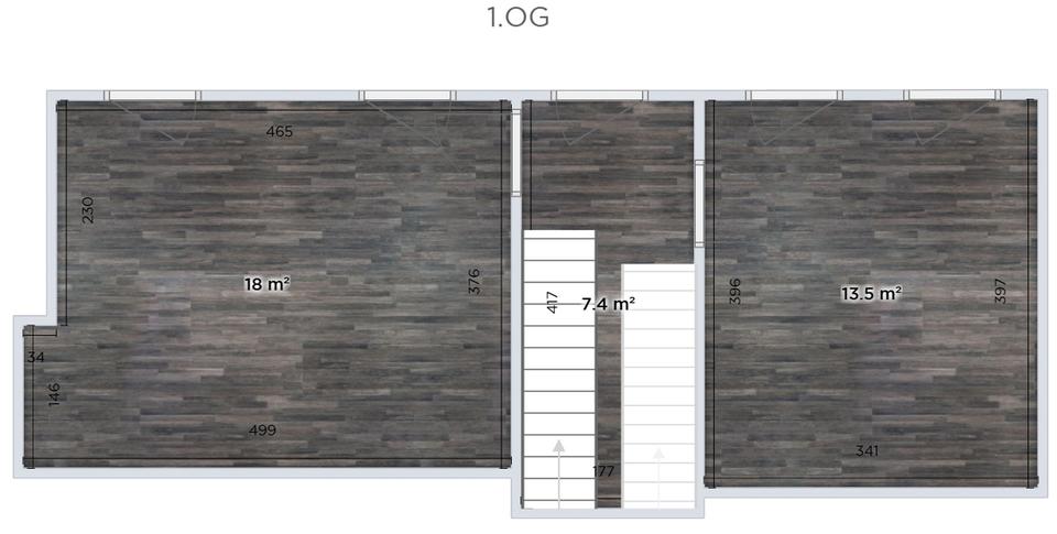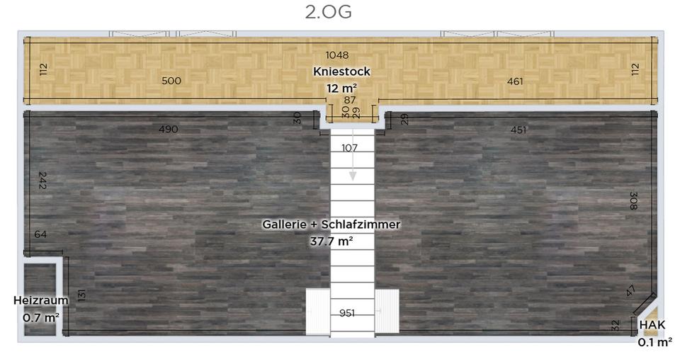 Im Dachgeschoss befindet sich eine beeindruckende Galerie mit sichtbaren Holzbalken, die ein offenes Raumgefühl und gemütliche Atmosphäre schafft.