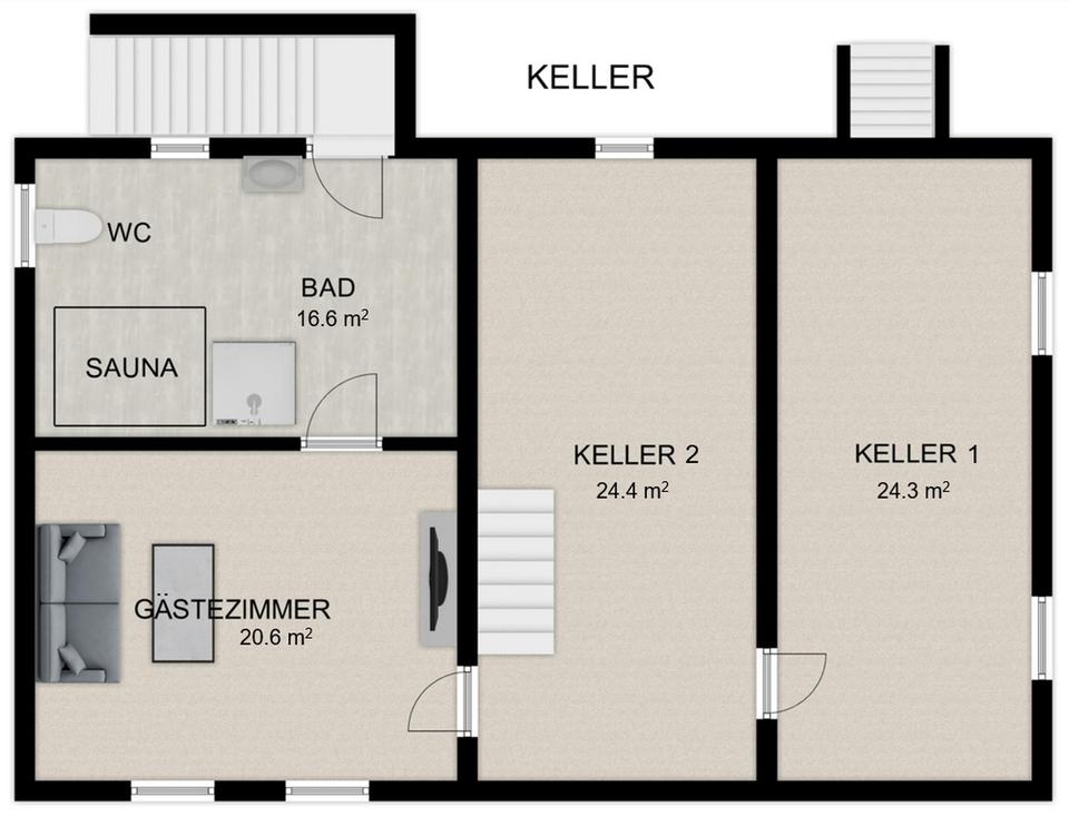 Das 1931 errichtete Haus wurde 1991 durch einen Anbau erweitert und in den Jahren 2016/17 umfassend sowie energetisch modernisiert. Im Untergeschoss befinden sich unter anderem ein Gästezimmer sowie ein Bad mit Sauna. Dank separatem Zugang lässt sich dieser Bereich flexibel nutzen – beispielsweise als Rückzugsort für Gäste, Hobby- oder Arbeitsbereich, oder mit geringem Aufwand als potenzieller Einliegerbereich gestalten.