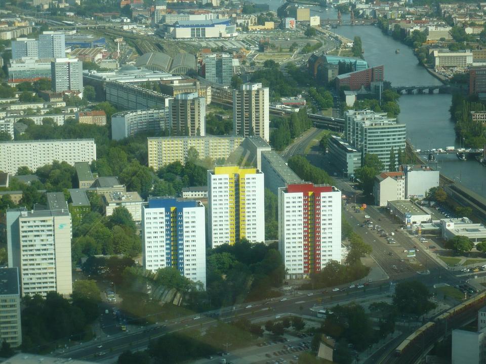 Seltene Aussichtslage über der Stadt: im 12. OG mit freiem Blick Richtunng Spree und das „kleine Diplomatenviertel“/Stadt-Mitte/Fernsehturm.