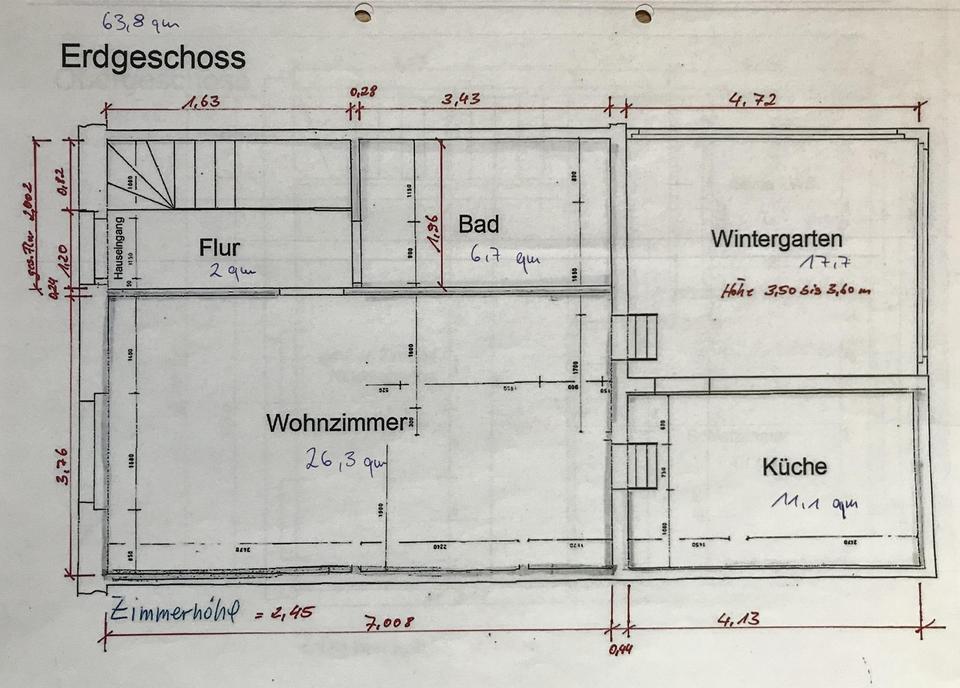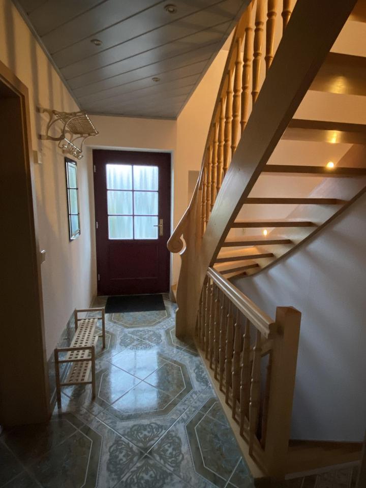 Im gesamten Erdgeschoss gibt es angenehme Wärme durch Fußbodenheizung. Vom Flur gelangt man ins große Wohnzimmer und von da in die moderne Küche (EBK wird mit verkauft und ist im Kaufpreis inkludiert). Das Bad ist mit bodentiefer Dusche und WM-Anschluss ausgestattet. Im OG gibt es zwei Schlafzimmer und ein Gäste WC. Der Keller ist komplett ausgebaut und verfügt über zwei Zimmer sowie einen kleinen Zählerraum. Hinter dem Wintergarten ist ein kleiner Garten mit der Möglichkeit, etwas Gemüse anzupflanzen und einen Grill zu betreiben.