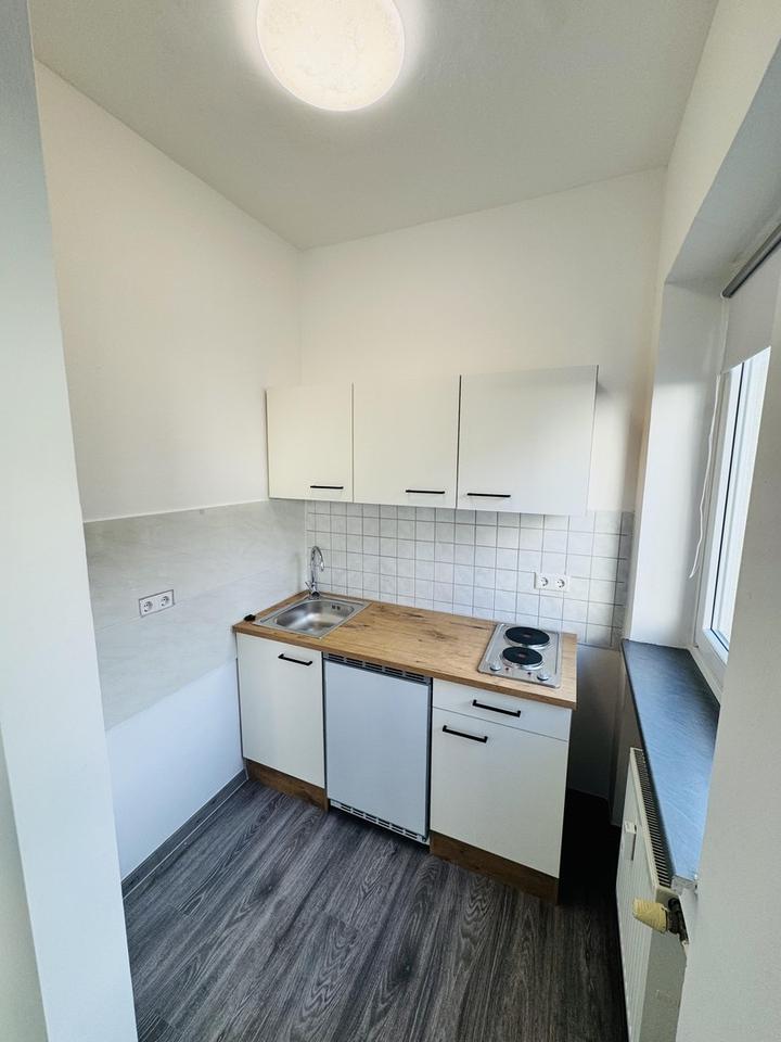Der lichtdurchflutete Wohn- und Schlafbereich bietet vielseitige Stellmöglichkeiten und schafft ein angenehmes Wohnambiente. Die Wohnung ist mit einer neuen Einbauküche ausgestattet, die sowohl funktional als auch modern gestaltet ist.