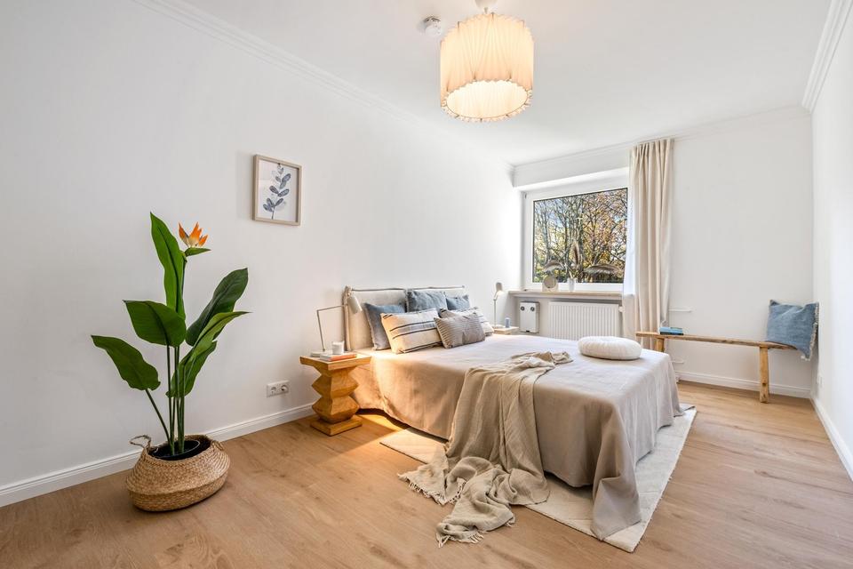 Die großzügige 3-Zimmer-Wohnung wurde vollständig renoviert und befindet sich in neuwertigem Zustand. Elektrik, Leitungen, Böden, Bäder und Wände wurden komplett erneuert.