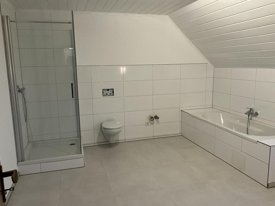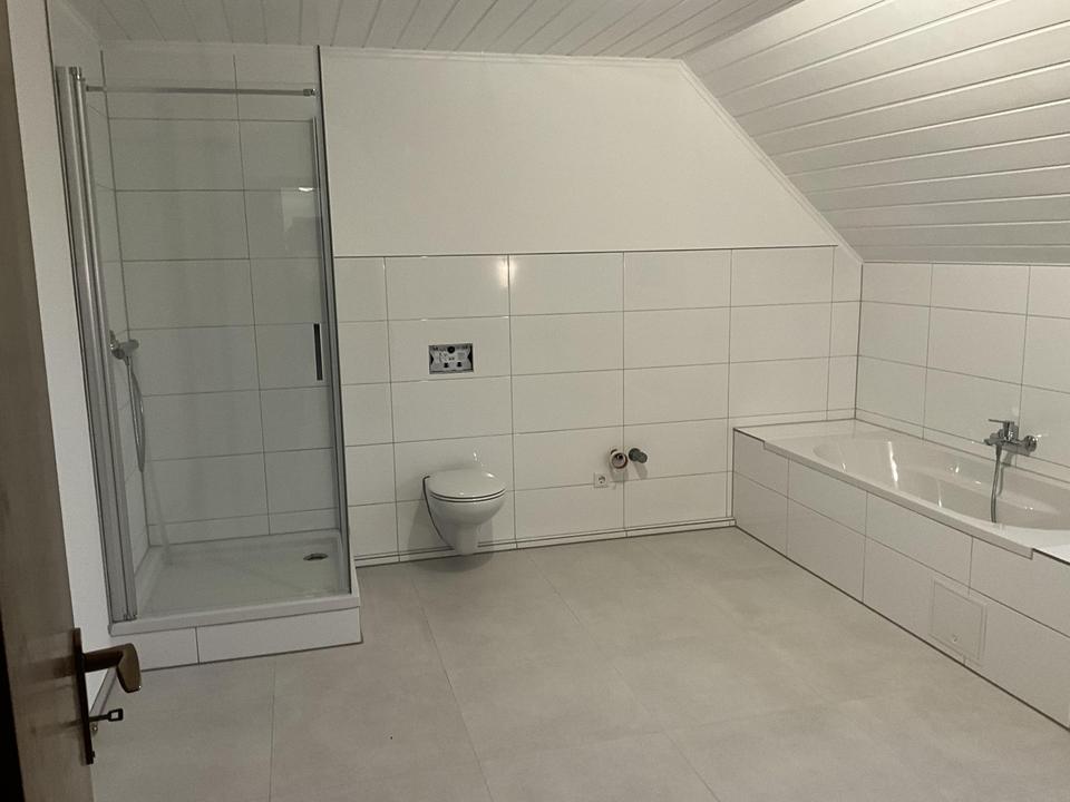 3 Zimmer Wohnung, 2 Schlafzimmer, 1 Großzügiges Wohnzimmer mit Kamin, Gäste WC, ein neues helles weißes Vollbad mit Dusche und Badewanne, Fenster im Bad und im Gäste WC, 2 Balkone, 2 Stellplätze und Glasfaser-Anschluss vorhanden. Statt Keller kann eine Abstellmöglichkeit zur Verfügung gestellt werden.