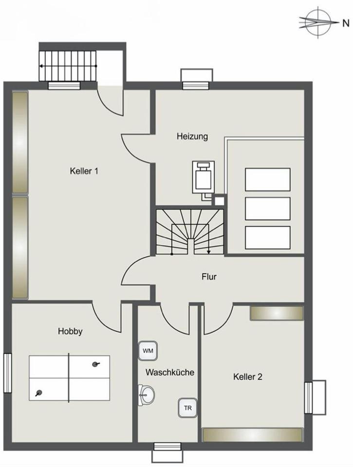 Eine Treppe führt Sie in das großzügige Kellergeschoss. Hier findet man einen Hobbyraum mit Tageslicht und Heizung, der beispielsweise als Büro oder auch als Jugendzimmer genutzt werden kann. Des Weiteren findet man neben dem Heizungsraum und der Waschküche so viel Platz, dass man sich hier sprichwörtlich austoben kann. Zwei weitere große Kellerräume bieten hinreichend Stauraum und darüber hinaus genug freie Fläche für Sportgeräte, Tischtennisplatte, Infrarotkabine, Fahrräder, etc. Einer der Räume bietet praktischerweise einen direkten Zutritt zum Garten.