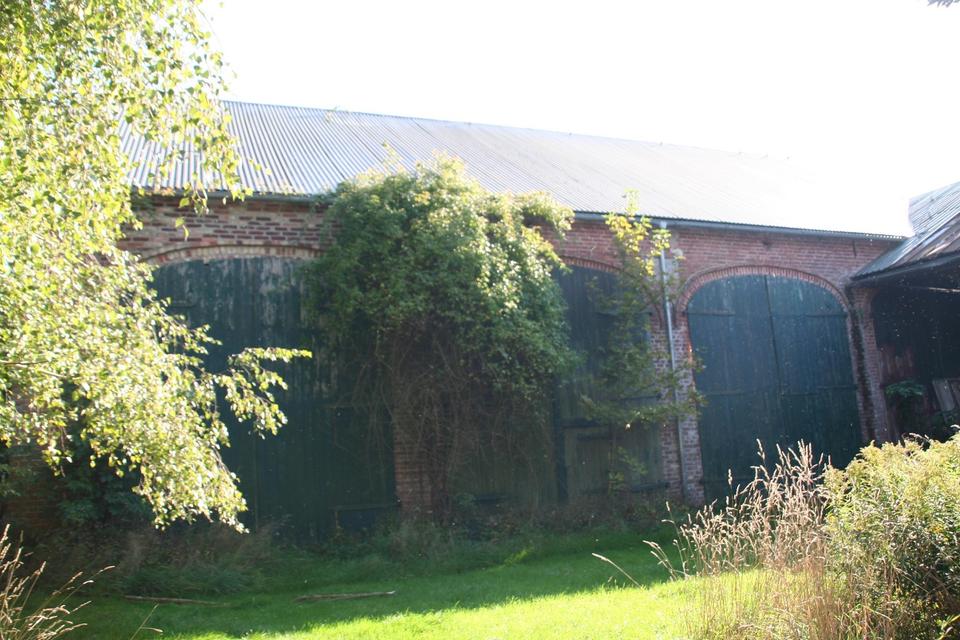 Ein imposantes 4 Meter hohes Tor mit der anschliessenden Durchfahrt unterteilt die beiden Wohnungen und führt in den grosszügigen, von Blicken geschützten Innenhof. Dieser wird auf beiden Seiten von zwei großen Ställen sowie einer stattlichen Scheune umrahmt, die gemeinsam eine beeindruckende Nutzfläche von ca. 1.400 m2 bieten. Die Architektur des Hofes sorgt für absolute Privatsphäre – ein idealer Rückzugsort für Menschen, die das Landleben genießen möchten. Sie bietet auch die Möglichkeit die Wohnnutzung nach Absprache mit dem Bauamt gefühlvoll zu erweitern.