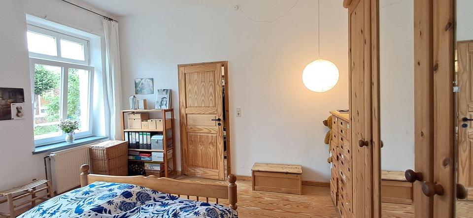Das Hauptgebäude aus dem Jahr 1910 wurde im Jahr 2000 mit viel Liebe zum Detail kernsaniert. Dabei wurde der historische Charakter bewahrt und durch moderne Wohnstandards ergänzt. Der Grundriss wurde zeitgemäß gestaltet, stilvolle Pitchpinedielen schaffen in allen Wohnräumen eine angenehme Atmosphäre. Große Fenster und Türen im Erdgeschoss sorgen für lichtdurchflutete Räume.