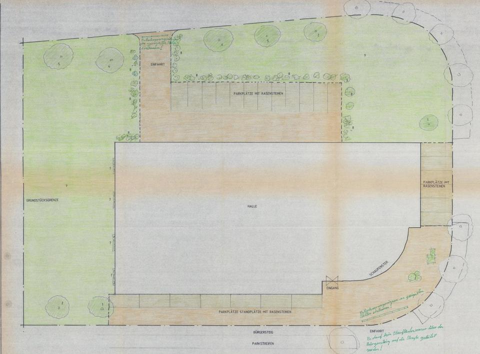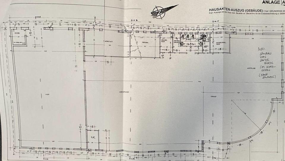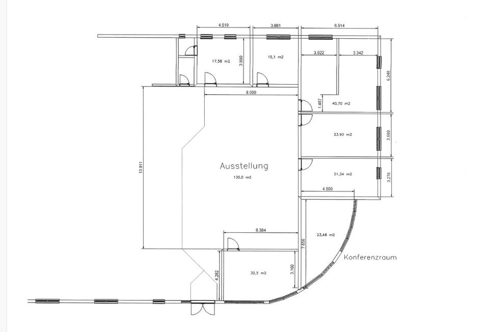 Die Gesamtfläche der komplett ebenerdigen Gewerbeimmobilie beträgt 1.300qm. Diese ist aktuell durch eine Brandschutzwand in 2 Bereiche aufgeteilt – ca. 350qm ebenerdige Lagerfläche mit 2 großen Rolltoren. Der zweite Bereich von ca. 950qm Fläche ist durch die Bauweise der Immobilie individuell teilbar. Auf dem gepflegten Gelände befinden sich ca. 22 Parkplätze.