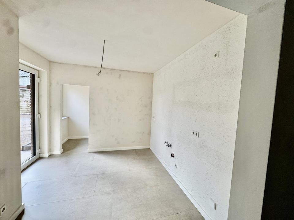 Der großzügige Wohnbereich öffnet sich über eine große Hebeschiebetür direkt zur Terrasse und in den Garten. Innen- und Außenbereich gehen fließend ineinander über – perfekt für entspannte Nachmittage, lange Sommerabende und echtes Wohnen im Grünen.