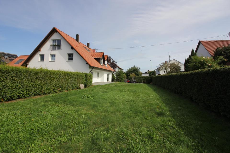 100x 140 cm, daneben Platz für Wschmaschine u. Wäschetrockner. Küche u. Esszimmer 25 qm mit schönem Erker, Wohnzimmer 25 qm mit Zugang zur 40 qm Granitterrasse und 325 qm großem eingewachsenem nicht einsehbarem Garten, umgeben von ruhigen Einfamilienhäusern, dazu noch ein 16 qm Keller für Fitnessgeräte und eine helle Einzelgarage mit Rolltor, von hier aus gehen Sie trockenen Fußes in die Woh. dann noch ein weiterer Pkw Stellplatz.