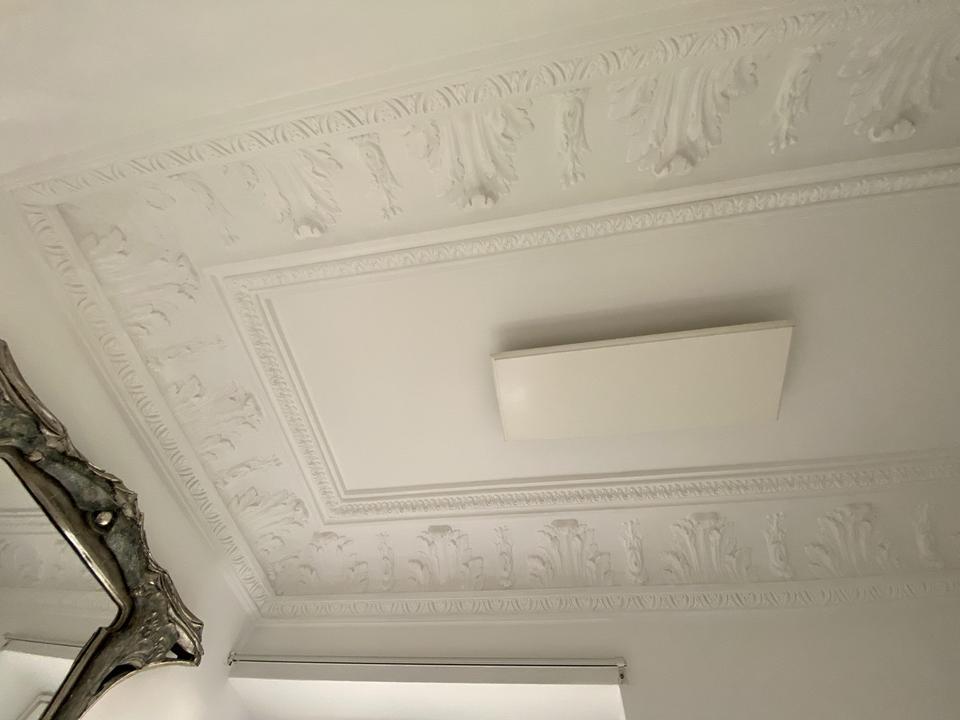 zusammen mit einem Ruhebereich im Freizeitbad des Hauses. Ebenso ein großen Raum, der noch zu Wohn- /Arbeitszwecken genutzt werden kann. Eine Raumhöhe von 2,35 m mit Stuckarbeiten und überwiegend Natursteinböden bieten auch hier Qualität.
