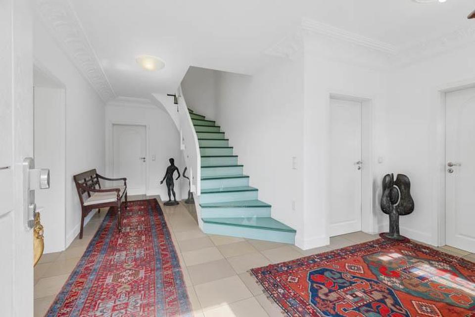 Den Eingangsbereich erreichen Sie durch eine handgefertigte schwere Echtholzhaustüre, Von dieser edlen Diele aus, gelangen Sie in die Küche, den hellen Ess-&Wohnbereich mit ca. 70 qm, den Hauswirtschaftsraum und ein separates Gäste-WC.