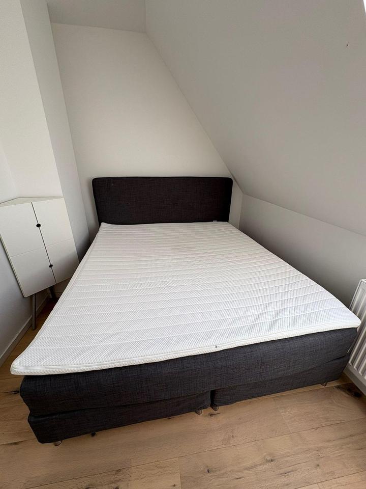 Bett, Kommode, Schrank vorhanden.
