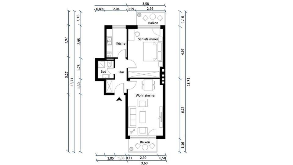 Ein besonderes Ausstattungsmerkmal sind die zwei Balkone. Der ruhig gelegene Südbalkon mit Blick ins Grüne bietet zusätzlichen Wohnkomfort und lädt zum Entspannen ein. Bereits beim Betreten der Wohnung vermittelt diese ein angenehmes und wertiges Wohngefühl.