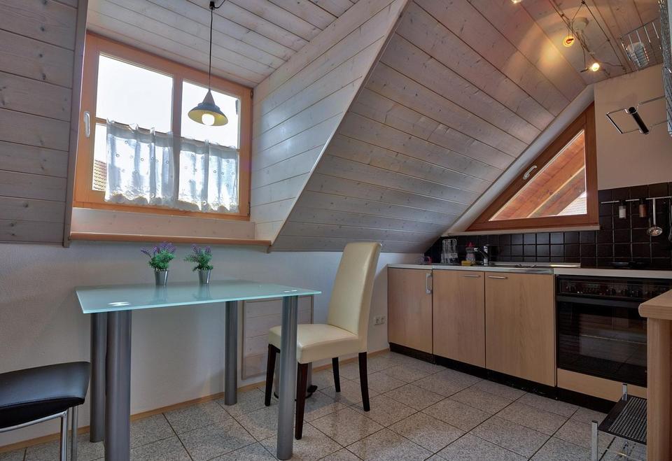 Großzügiges Wohnzimmer mit neuem Kachelofen (2021) und angrenzender Küche. Der als Essbereich geplante Teil des Raumes wird derzeit als Homeoffice genutzt, eignet sich jedoch für die Gestaltung eines großzügigen Wohn- und Esszimmers. In der Küche befindet sich eine einladende Frühstücksecke für bis zu drei Personen. Das Badezimmer ist ausgestattet mit Dusche, Badewanne, WC sowie Vorbereitung für ein Bidet und ein Urinal. Außerdem gibt es ein Schlafzimmer, das auch als Arbeitszimmer genutzt werden kann. Wohnzimmer, Schlafzimmer und Diele wurden 2021 neu gefliest und die Wohnung mit neuen Türen ausgestattet.