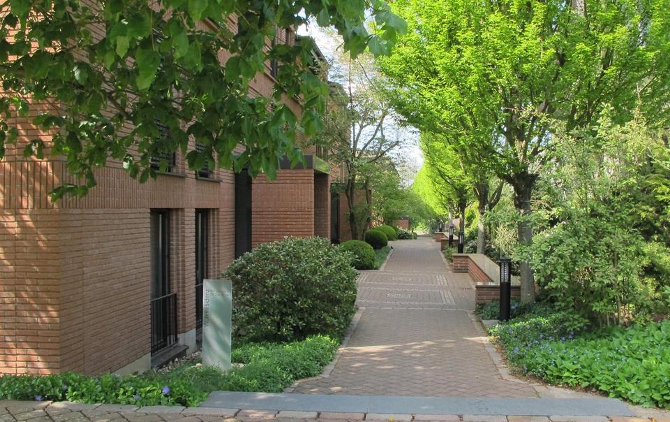 Umgeben von einer besonderen, durch eine Garten- und Landschaftsarchitektin geplanten Gartenanlage, verfügt die Wohnanlage über 24 Eigentumswohnungen in zwei Doppelhäusern und 37 Stellplätze in einer Tiefgarage. Beide Häuser sind verbunden durch die gemeinsame, sehr gut anzufahrende, sichere und helle Tiefgarage mit einem ferngesteuerten elektrischen Schnell-Lauftor, das sich bei Ausfahrt automatisch öffnet.