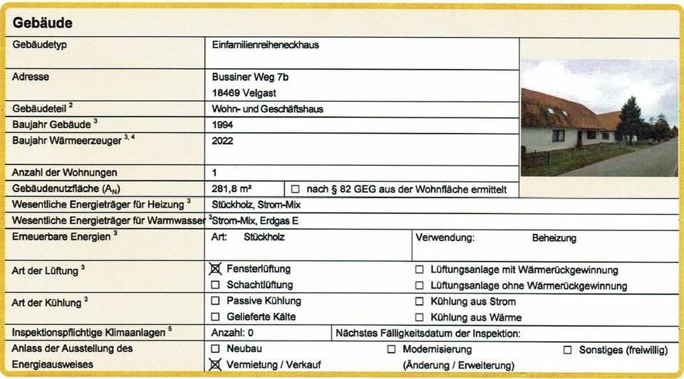 Velgast ist eine Gemeinde zwischen den Städten Ribnitz-Damgarten und Stralsund. Die B105 ist in ca. 3KM erreichbar, bis zur A20 sind es ca. 25KM.