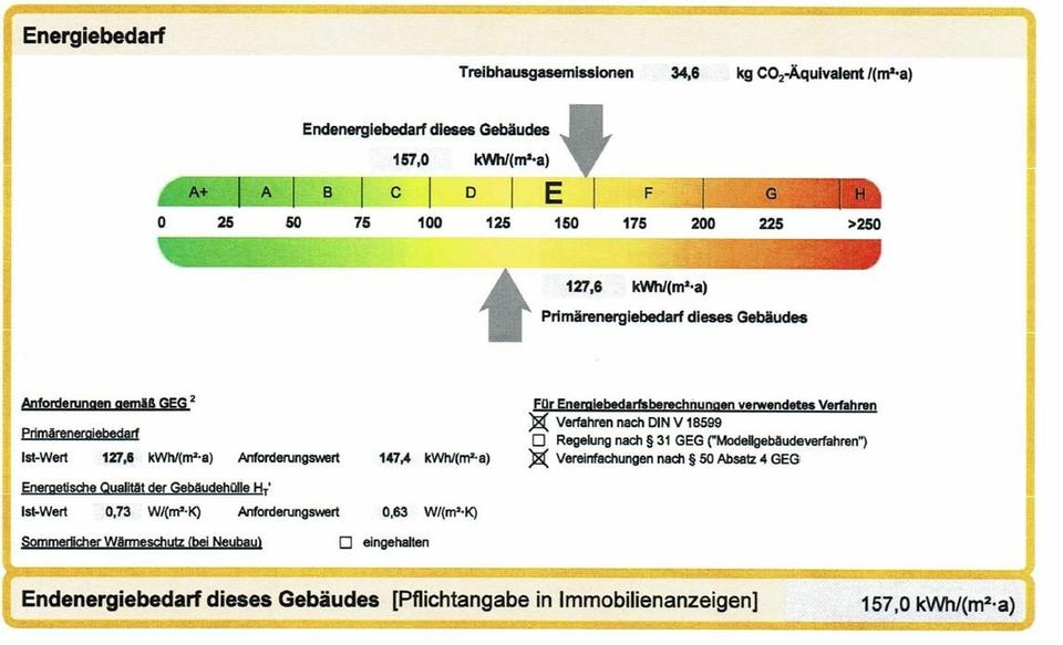 Endenergiebedarf: 157 kWh/(m²*a)