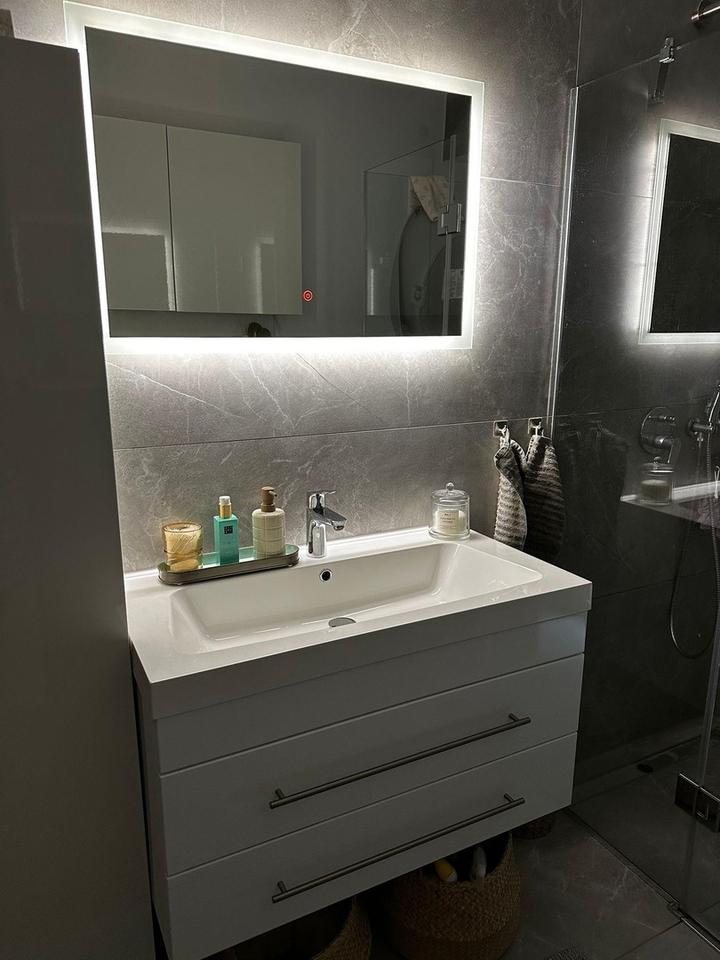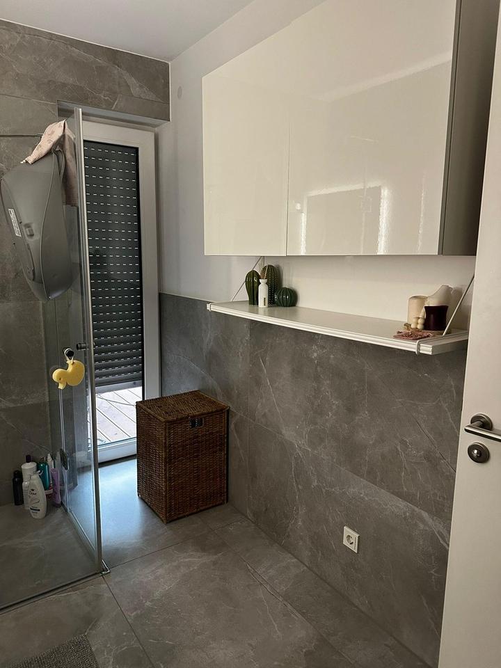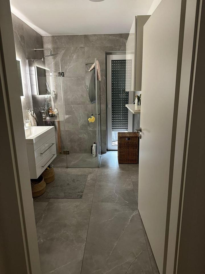 -Modernes Bad: Ausgestattet mit hochwertigen modernen Fliesen, einer bodentiefen Dusche und Fußbodenheizung.