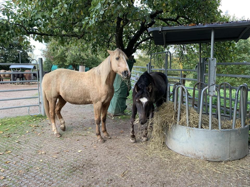 -frostsichere Tränken und Heuraufen in allen Paddocks