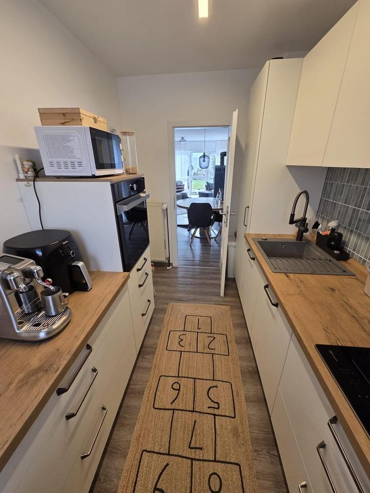 Wir haben das Haus in 2019 saniert mit neuen Zimmertüren und Fußböden im ganzen Haus. Die Haustür ist aus 2024. Die Küche wurde in 2025 eingebaut und kann gerne gegen einen Aufpreis mit übernommen werden.