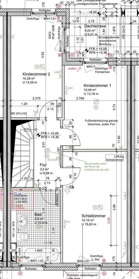 Im Obergeschoss stehen drei Schlafzimmer zur Verfügung – ideal für Familien oder als Kombination aus Schlaf-, Kinder- und Arbeitszimmern. Zwei modern ausgestattete Badezimmer (ein Gäste-WC mit Dusche sowie ein großes Bad mit Wanne und Dusche) sorgen für hohen Wohnkomfort.
