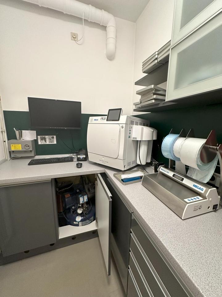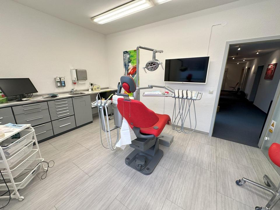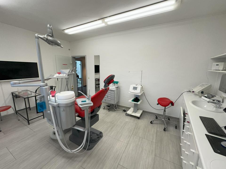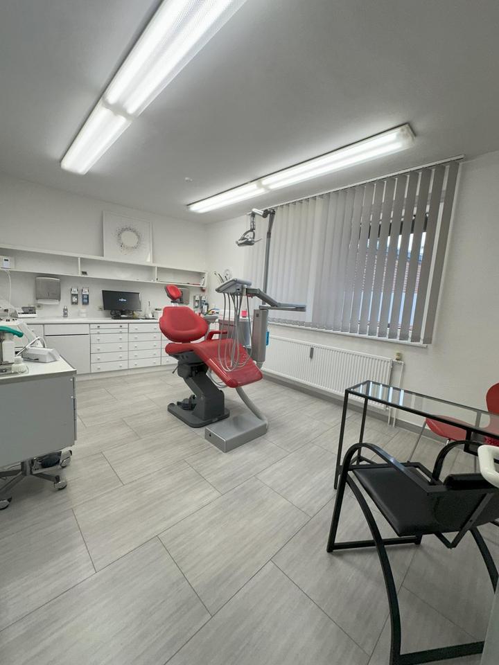 Die Praxis wurde laufend modernisiert – zuletzt wurden im gesamten Haus vermieterseitig neue, zweifach verglaste Kunststofffenster eingebaut – und ist vollständig eingerichtet. Die drei Behandlungsräume sind mit hochwertigen Zahnarztstühlen und moderner Technik ausgestattet. Ein großzügiger Empfangsbereich, ein angenehmes Wartezimmer, separate Damen- und Herren-WCs, ein eigenes Labor sowie ein großer Pausenraum mit Küche und zusätzlichem Mitarbeiterbad runden das Raumangebot ab.