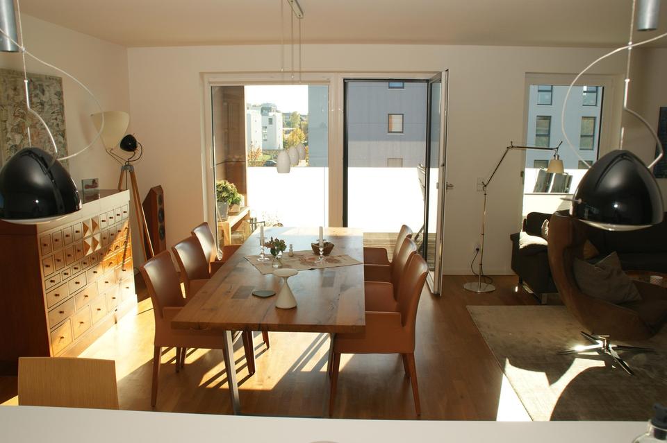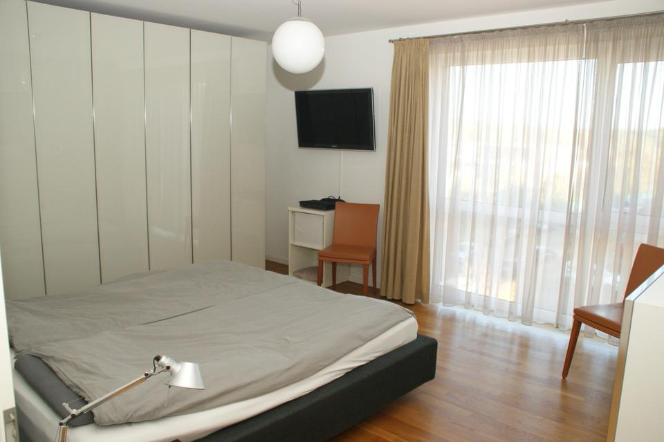 3.Obergeschoss, große Süd-West-Loggia, 1A-Stadtblick, helle großzügige Räume, optimale Raumaufteilung mit 270°-Ost-, Süd-, Westausrichtung, Bulthaup b1-Küche (mit Geräten Miele u. Gaggenau), Eichen-Parkett, Fußbodenheizung, raumhohe Fenster mit Sicht- und Sonnenschutzvorrichtung aus maßgefertigten Plissee-Jalousien bzw. raumhohen Vorhängen, maßgefertigte nicht sichtbare Fliegengitter ergänzen den Komfort, Abstell-/Hauswirtschaftsraum, Gäste-WC, großes Bad mit viel Tageslicht, Aufzug von TG bis zur Wohnung, großzügiges komfortables Treppenhaus, Video-Gegensprechanlage, gr. TG-Stellplatz als 3-seitig umschlossene Einzelbox mit Elt.-Vorrüstung für Wallbox-Montage (zusätzlich zu erwerben), großer Kellerraum (11,3 qm).