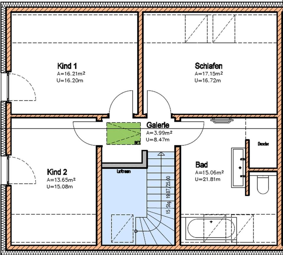 Jede Haushälfte ist sowohl im ausgebauten als auch im