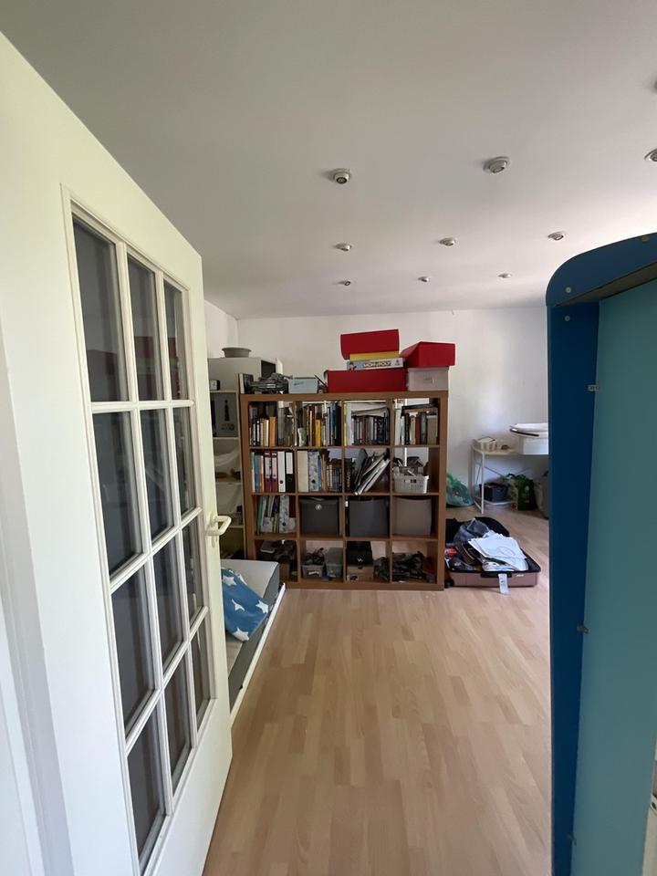 ausgebautes DG: Bad mit Dusche, Küche mit Pantry, Zimmer möbliert. Bad und Küche Fliesen, Zimmer Teppich und Laminat. Zimmer mit Verdunkelungsrollos