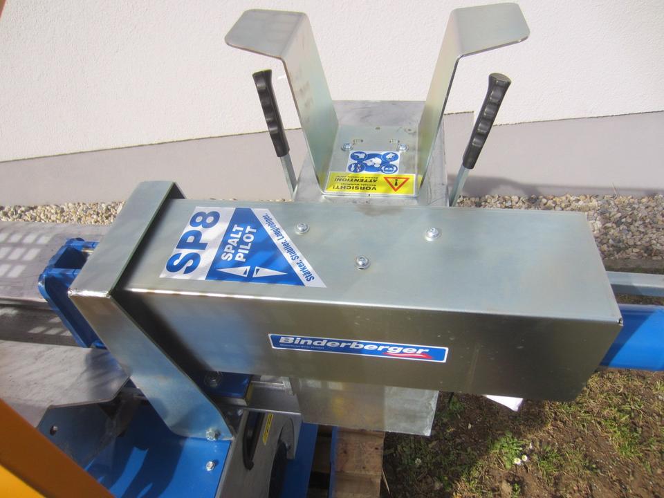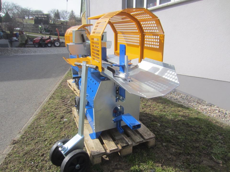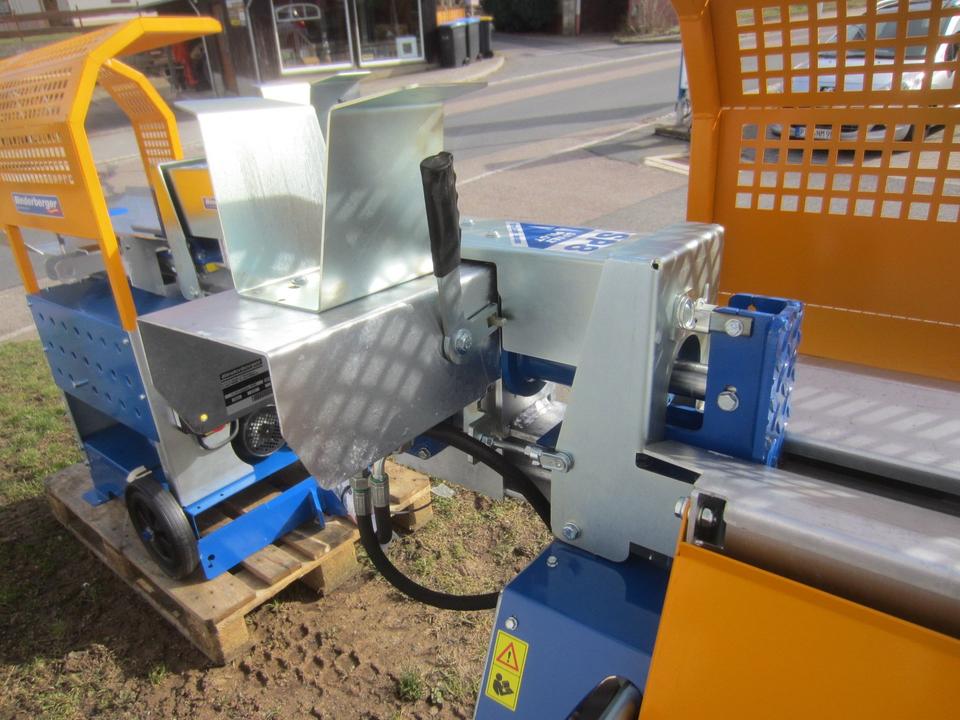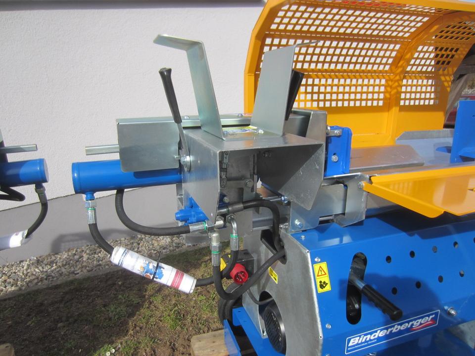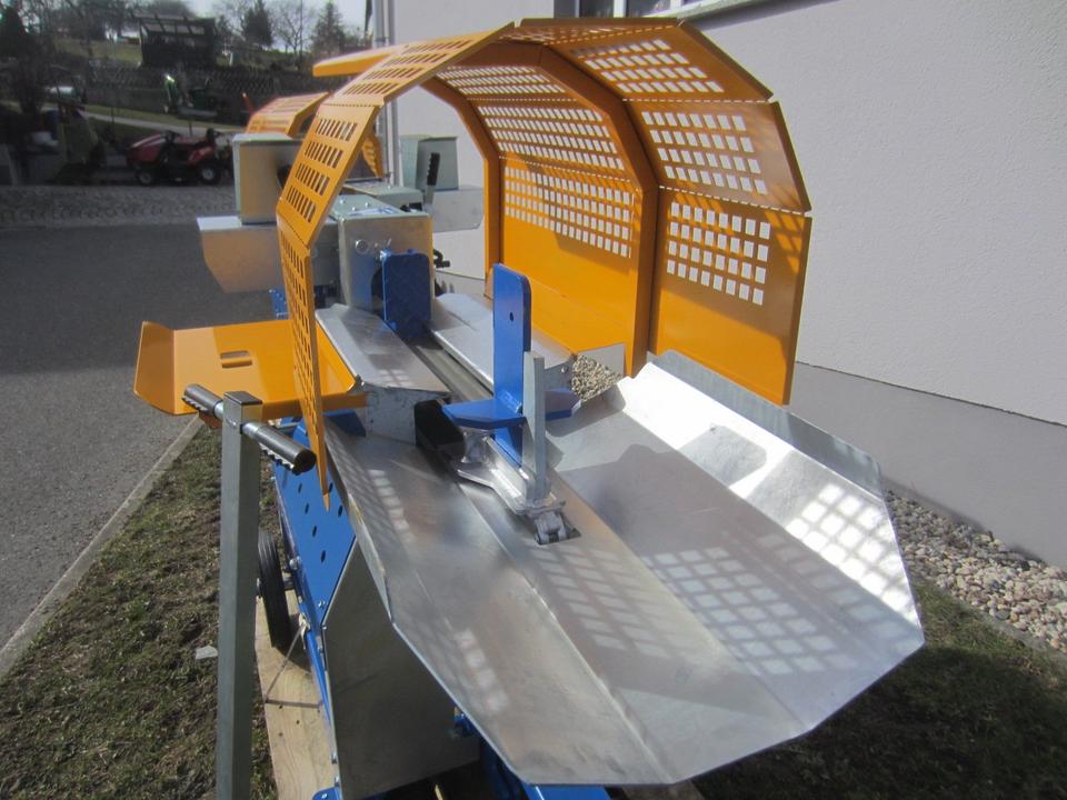 Durch die liegende Bauweise werden der Arbeitskomfort und die Sicherheit erheblich erhöht. Mit 8t Spaltkraft erhältlich, wird das Holz durch das serienmäßige höhenverstellbare 4-fach Spaltkreuz gedrückt, wonach es auf der ausgeklappten Holzablage liegen bleibt. Damit das Spaltkreuz unseres Kurzholzspalter liegend keinen unnötigen Leerweg bis zum Anschlag fahren muss, ist der Hubweg begrenzbar und an die Brennholzlänge anpassbar.