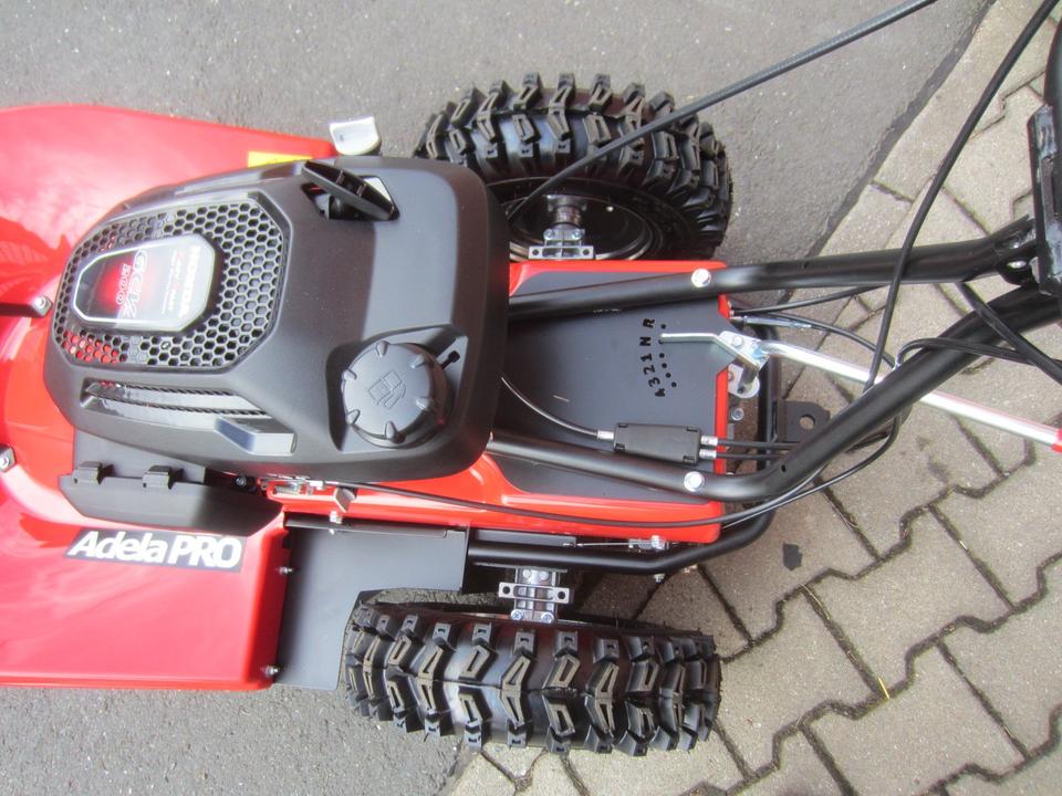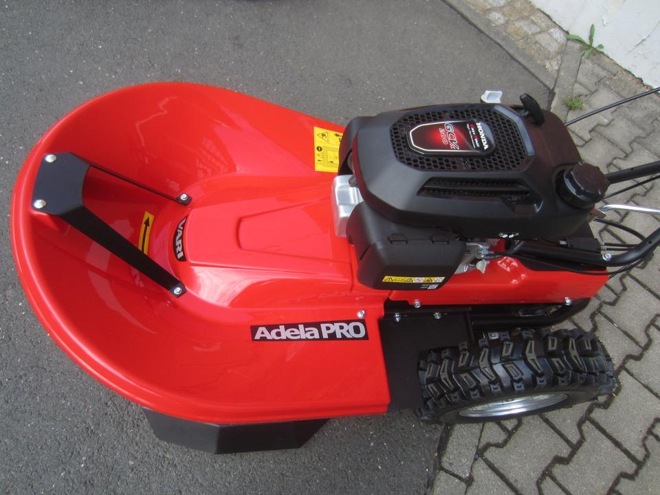Die Mähtrommel ist mit vier Messern ausgestattet und hat eine Arbeitsbreite von 70 cm. Die Kunststoffverkleidung der Mähtrommel erinnert an die ursprüngliche ADELA, sie ist jedoch mit einer Strebe gegen Beschädigung ausgestattet. Die Bedienung ist dank der Höhen- und Seitenverstellung der Lenkholme für die Bedienperson sehr komfortabel. Dazu gibt es im Lenkholmgelenk ein Antivibrationsglied, das Vibrationen dämpft. Die Lenkholme sind mit ergonomischen Betätigungshebeln ausgestattet, die auf die Handflächen nur wenig drücken; die Handgriffe mit Luftkammern eliminieren Mikrovibrationen. Das Mähen mit dem Trommelmäher ADELA PRO ist also sehr präzis und bequem.